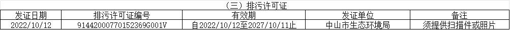 中山市珍家山污水處理有限公司排污許可證正副本