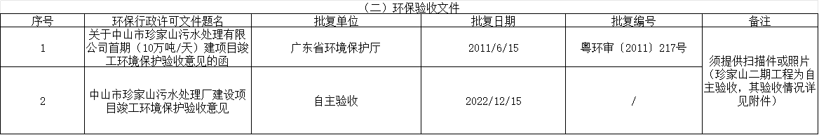 中山市珍家山污水處理有限公司環(huán)保驗(yàn)收資料