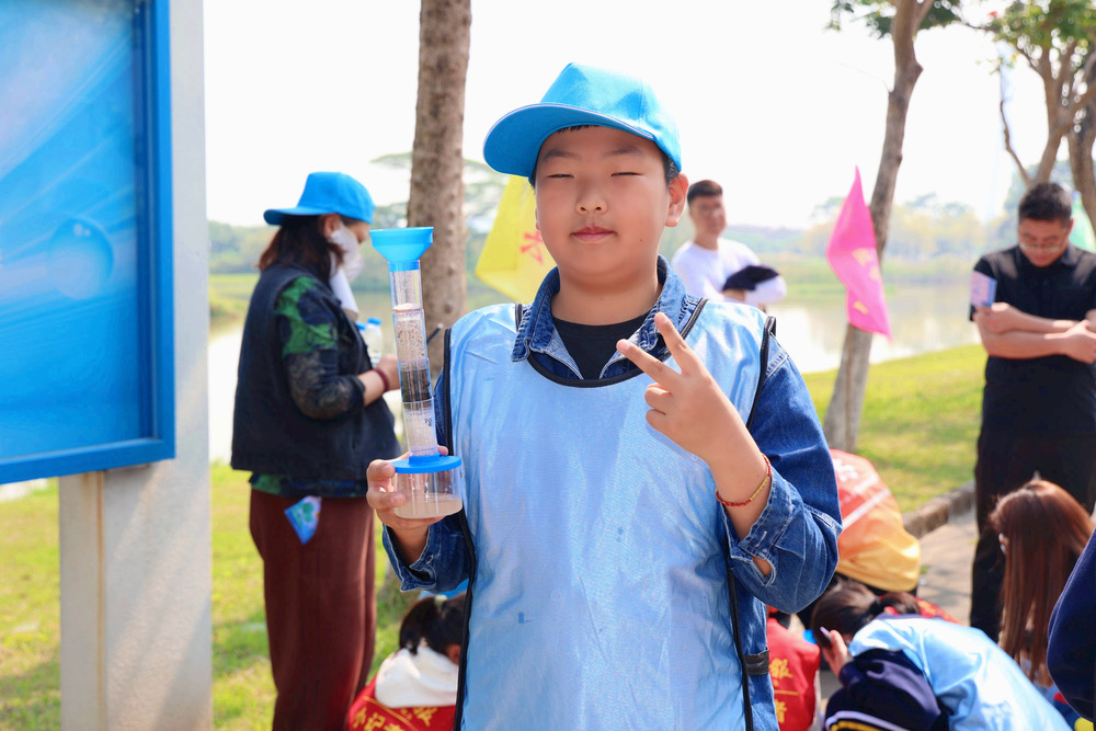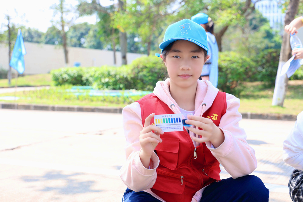“水質(zhì)檢測賽”則讓孩子們化身小小科學(xué)家,使用檢測試劑觀察水的酸堿度和余氯數(shù)值變化。