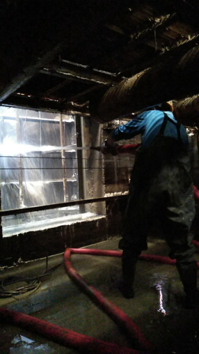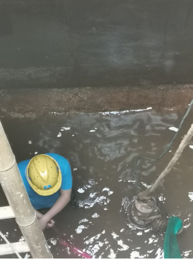 此次清洗工作主要針對反應(yīng)沉淀池中的底泥、斜管、以及池壁表面的附著物進(jìn)行清理,由于池體較小,設(shè)備結(jié)構(gòu)較為復(fù)雜,為此采取人工清洗方式開展清洗工作。清洗過程中,廠區(qū)工作人員不怕苦不怕累,任勞任怨,加班加點(diǎn),互相配合,充分發(fā)揮團(tuán)隊(duì)合作精神,保質(zhì)保量完成了本次清洗維護(hù)任務(wù)。不僅如此,南頭供水對廠區(qū)內(nèi)一級泵房、二級泵房以及一廠儀表間、應(yīng)急室的地面,基座等區(qū)域進(jìn)行“亮化”工程,刷地坪漆,使供水廠面貌煥然一新。