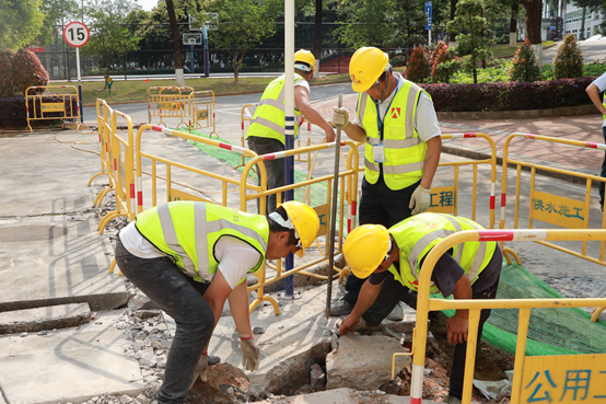 3月19日下午2時許,戶外驕陽似火。在中山軍分區(qū)家屬樓下,10多個頭戴安全帽、身穿反光背心的工人正緊張忙碌地施工:開挖管坑、覆蓋綠網(wǎng)、灑水降塵......這是中山公用水務(wù)有限公司為了保障中山軍分區(qū)用水安全所進行的給水管改造工程。